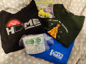 Not long after that, I received a message from a classmate of Teri’s husband, Michael. Anne would be coming to Poland to research her ancestry and asked if there was anything she could bring me. Anne came to Warsaw, we planned to meet on April 30th for lunch. Teri had sent her the contents of THE BOX (not all as it would have been too much stuff). We met, she handed off the merchandise and we went for a lovely al fresco lunch in Plac Konesera in the Praga district. After lunch, we headed to Old Town to sit, and we watched people while sipping a beverage. Then we decided to go back to Praga and visit the Vodka Museum. Well, we had just gotten off the tram and we were walking toward the Museum, and I dropped the “F” bomb. I left the package sitting next to the outside table at the restaurant in Old Town. Anne asked if I wanted to go back. I said no, this is Poland, someone will turn it in, and I will get it on my way home. I’ll call from the museum. No one answered the phone, but I was able to send a message through Google and I got a reply. They said, “We have your package.” I told them I would be there later to get it. Well, we left the vodka museum and decided on a nightcap. The little Polish-French bartender was 20 and kept us entertained until we finally decided to call it a night. I said goodbye to Anne and headed to the tram stop, not realizing it was so late the tram I needed had stopped running. No problem, I called an Uber who dropped me as close to Old Town as possible as there is no vehicle traffic on the weekends. Long story not short, a wee bit tipsy and sometime nearing midnight in Warsaw I picked up the package. Another Uber to get me home with my treasures. I had asked Teri for a (note the word “a” meaning one) packet of ranch dressing mix (no one knows what ranch is here) she of course sent me 12. She also sent a Christmas shirt and “Home” hoodie from Sunrise Inn of Warren, an MTS painting company shirt from Michael and Anne tossed in a bag of candy. That my friends is the saga of the box from 2021.