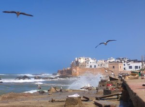 Casablanca sits on the North Atlantic in Northwest Africa and is the largest city in Morocco. After leaving Rick’s Café we walked along the sea to the Hassan II Mosque. It is the largest functioning mosque in Africa and is one of the largest in the world. Its minaret is the world’s tallest minaret at 210 meters (689 ft). A maximum of 105,000 worshippers can gather for prayer: 25,000 inside the mosque hall and another 80,000 on the mosque’s outside ground. Then it was back to Marrakech because we had a day trip to Essaouira planned.