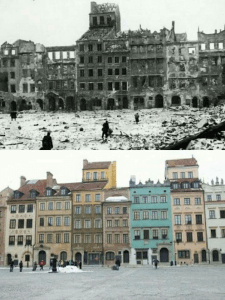 I am currently located in Warsaw Poland. Warsaw is no stranger to war. During the German occupation (1939-1945), 80-90% of Warsaw was destroyed, including museums, art galleries, theaters, churches, parks, castles, and palaces. During the International Reparations Conference held in Paris in 1946, it is estimated that Poland’s material losses were 16.9 billion US dollars, and two-fifths of the country’s cultural property was destroyed. If this wasn’t bad enough, Poland was forced to hand over 48% of its land to the Soviet Union due to international pressure from world powers.