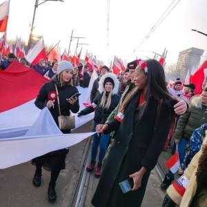 I arrived at the Russian Embassy about 30 minutes before the scheduled start time of 18:00. The road was still open to traffic. People lined both sides of the street and cars and buses passing by showed support by sounding their horns. All public transportation in Warsaw is also flying the Ukrainian flag and the flag of Warsaw. As the crowd grew people continued to queue up along the roadside. About 5 minutes before the start time, the police blocked the street to traffic and then told the crowd they could fill the street. At this point, some speakers took to a small stage. I didn’t understand what was being said but could feel the emotion of the crowd. When I found Zaka, my flatmate, in the crowd, he was able to translate a few things. There was a point when the crowd chanted peace in Ukraine and free Russia from Putin. By the time we decided to leave, the crowd had grown exponentially. What I experienced was people from many nations, men, women, and children all coming together in unity waving Polish and Ukrainian flags. As I stood looking at the massive Russian Embassy flanked by Polish police, I realized this war was becoming personal to me.